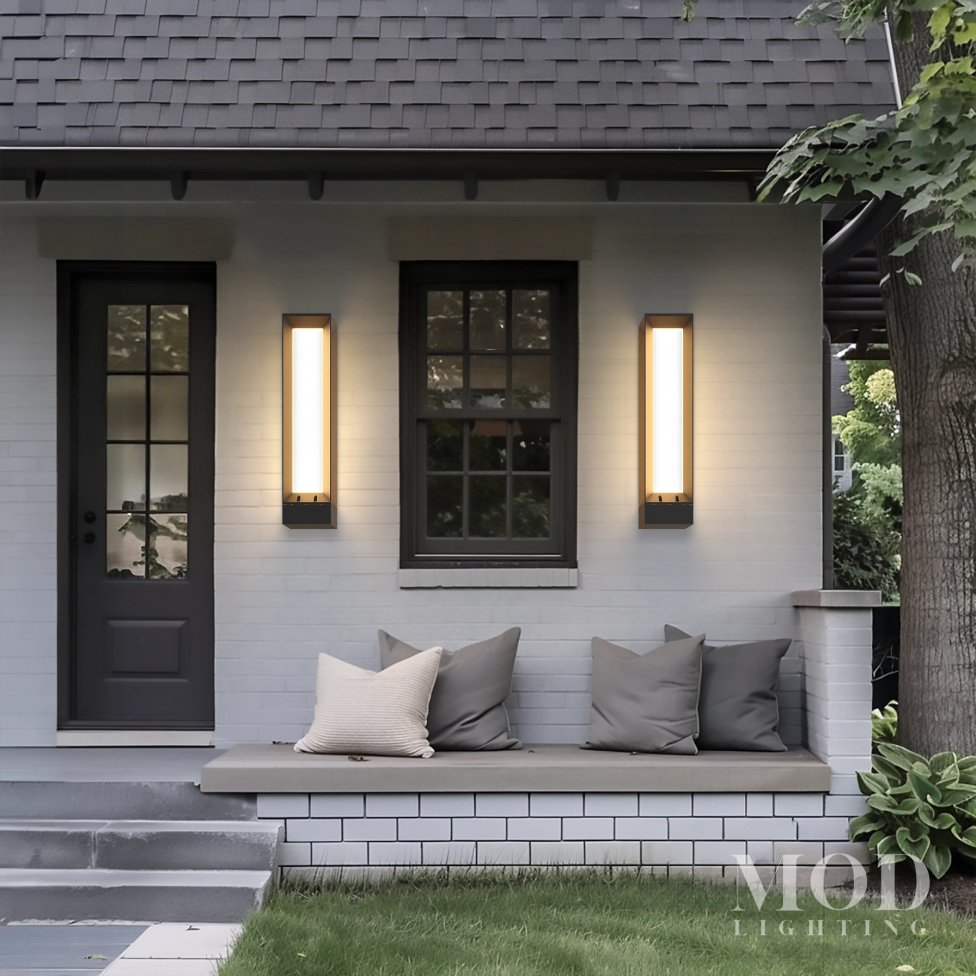 Size: You should select an outdoor wall sconce in proportion to other areas of your home, such as windows, doors, and outdoor furniture.